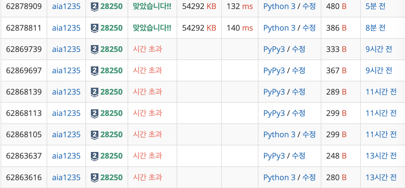 - ์์์ ๋ณด๊ณ ๋ฌด์ํ๊ฒ ์ด์ค for์ผ๋ก ๊ตฌํํ๋ค๊ฐ ์๊ฐ์ด๊ณผํ๋ค.